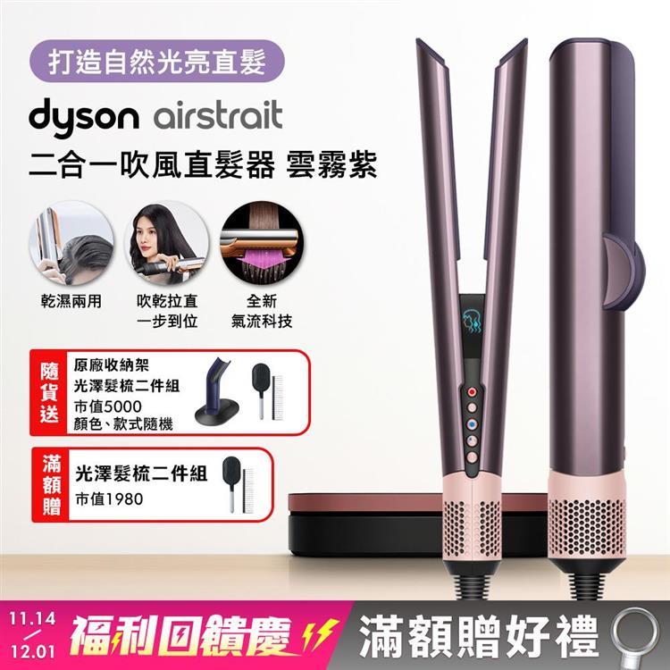 Dyson戴森 Airstrait二合一吹風直髮器 HT01 雲霧紫【送原廠架+4ML髮乳*2】
