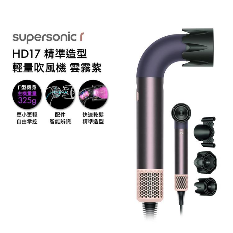 【贈原廠架+抗毛躁吹嘴+烘罩+美髮梳】Dyson戴森 HD17 Supersonic r 精準造型 輕量吹風機 雲霧紫