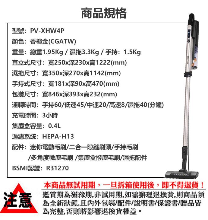 【日立HITACHI】多合一全能洗地無線吸塵器 PV-XHW4P / PVXHW4P