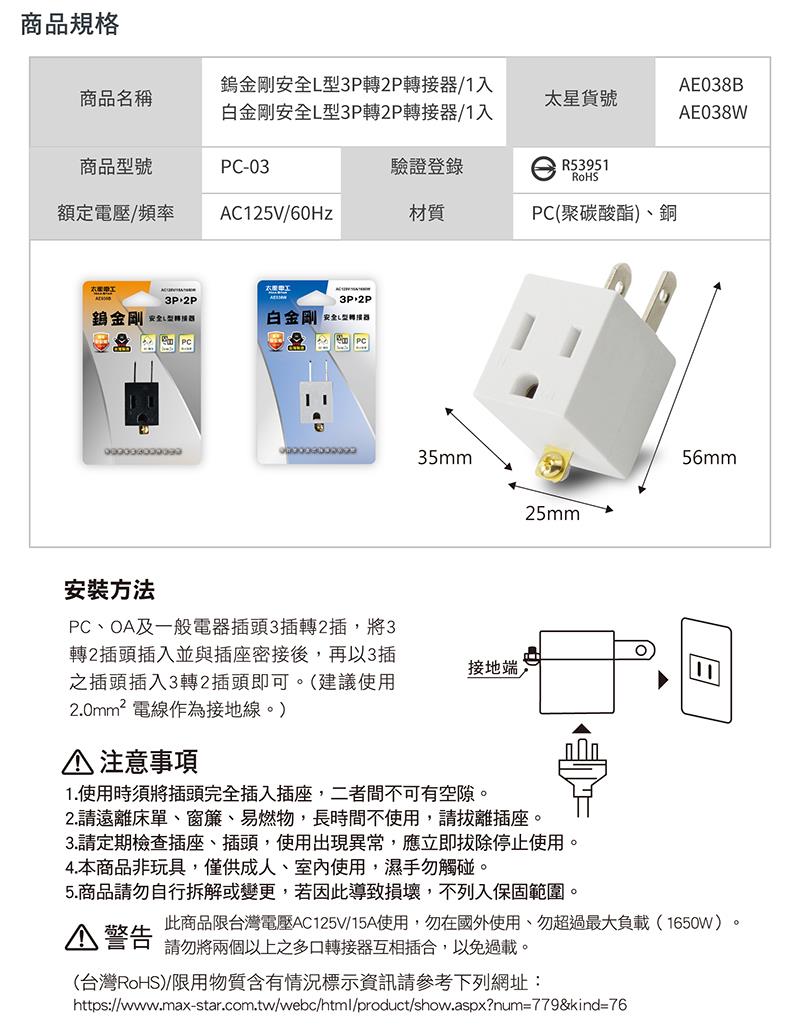 ◆L型設計 3P轉2P◆ PC防火耐燃材質 ◆台灣製造 品質有保障 ◆投保新台幣三千伍佰萬產品責任險