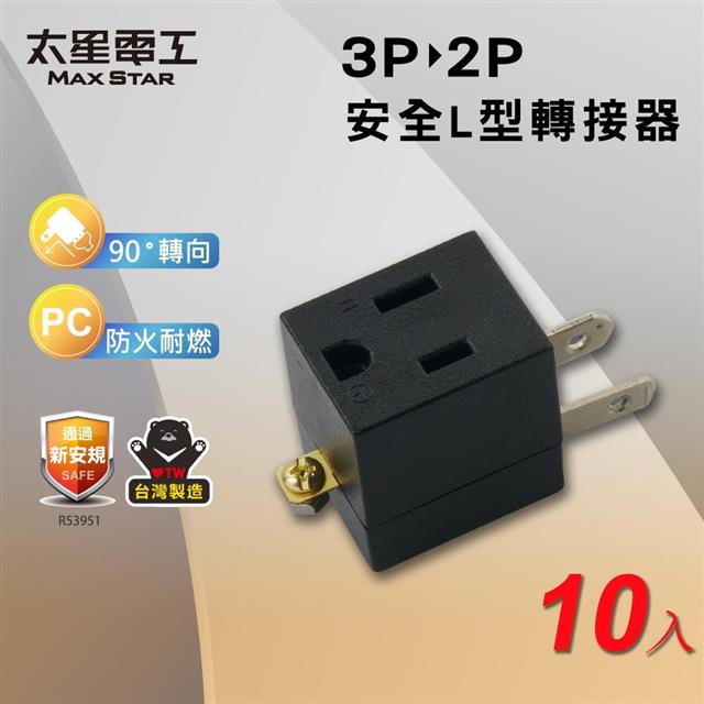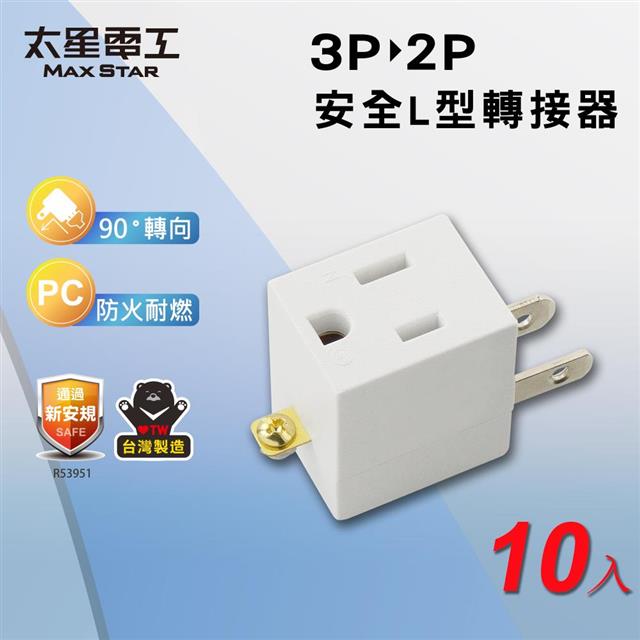 【太星電工】安全L型3P轉2P轉接器(10入) 防火耐燃 3轉2插頭