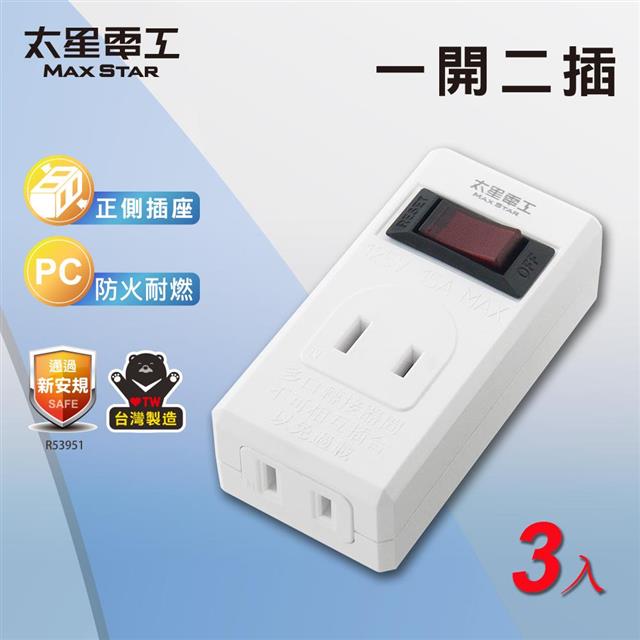 【太星電工】一開二插分接器2P(3入) 過載自動斷電 過載保護 總開關 檢驗合格