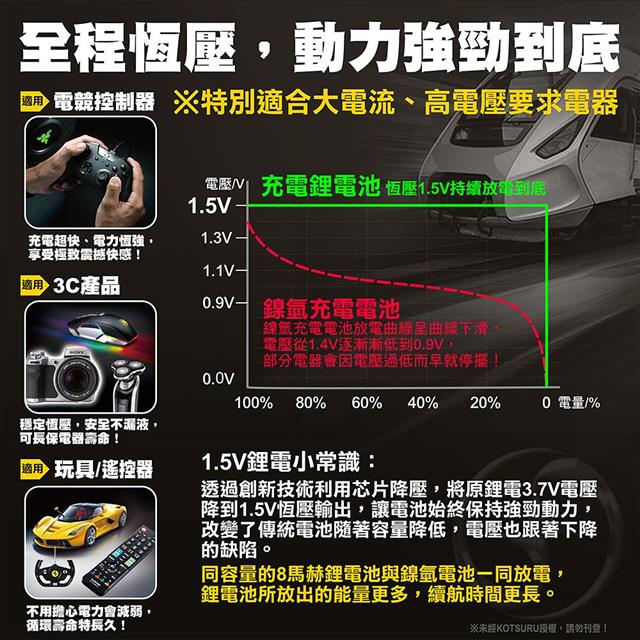 【8馬赫】4號/AAA恆壓可充式1.5V鋰電池: