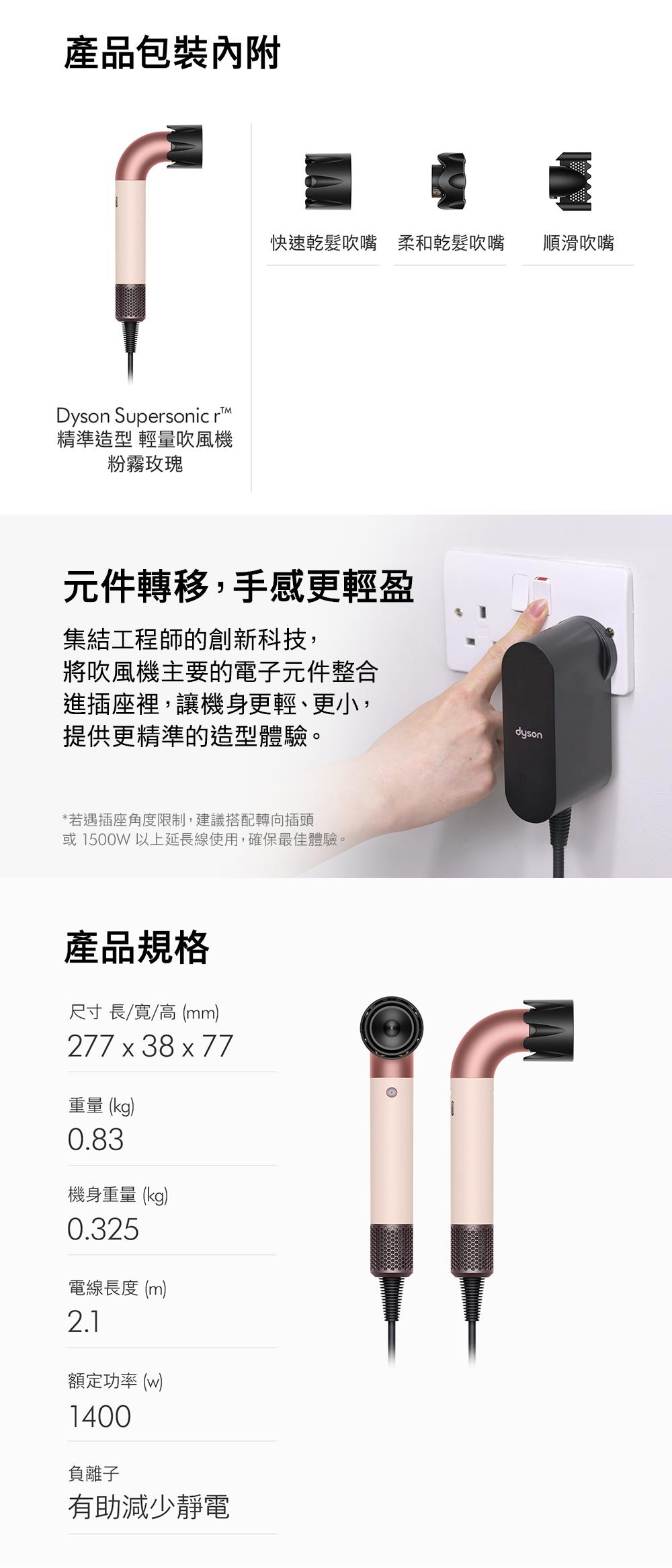 品名:Dyson Supersonic r™ HD17 精準造型輕量吹風機 粉霧玫瑰