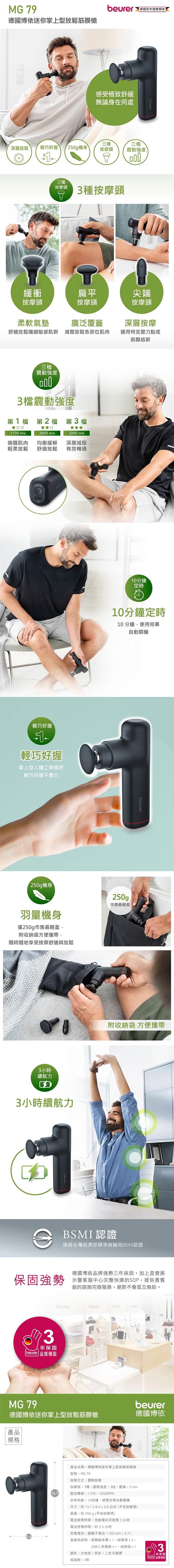 贈頭皮後頸按摩帶【beurer 德國博依】迷你掌上型放鬆筋膜槍 MG 79/MG79 黑色 三年保固