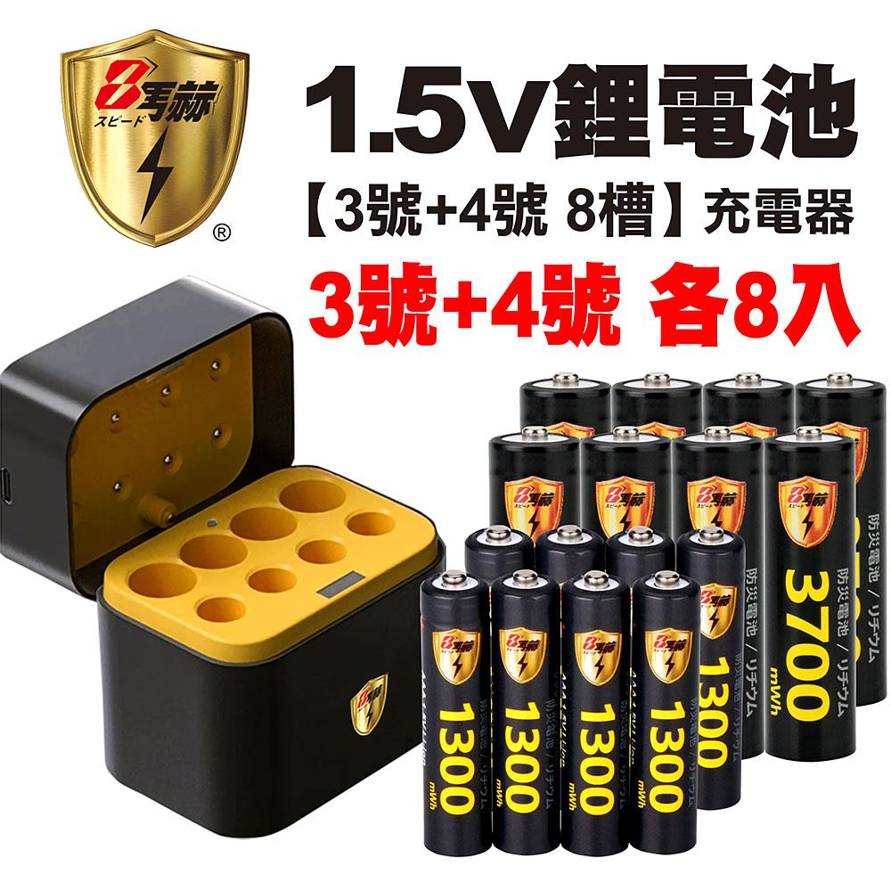 【8馬赫】3號/AA 4號/AAA 1.5V鋰電池 3700mWh 1300mWh 各8入+(3號/4號各4槽)AI隨身收納盒充電器