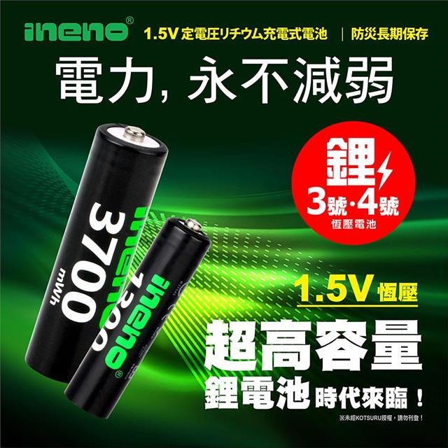【ineno】3號/AA 4號/AAA 1.5V鋰電池 3700mWh 1300mWh 各4入+(3號/4號通用)液晶顯示充電器
