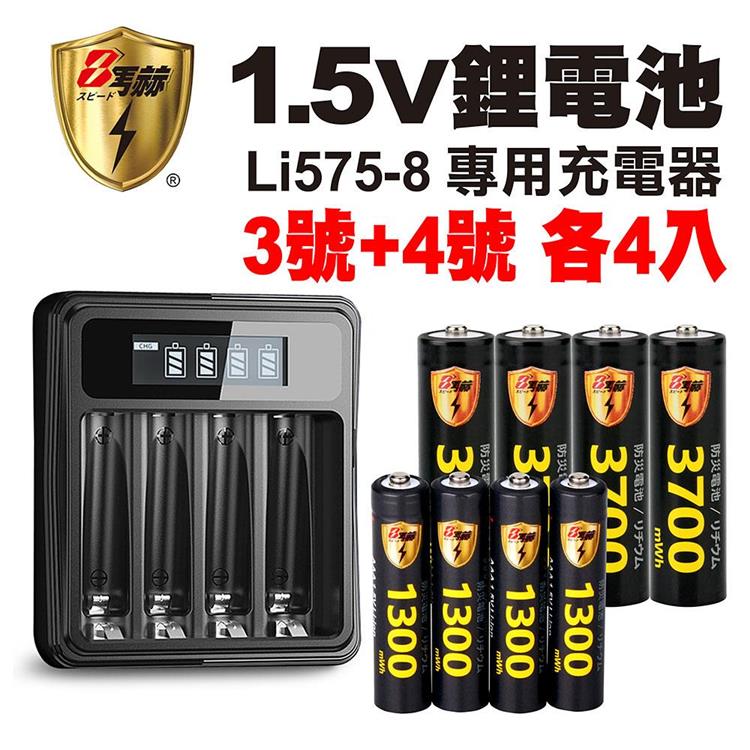 【8馬赫】3號/AA 4號/AAA 1.5V鋰電池 3700mWh 1300mWh 各4入+(3號/4號通用)液晶顯示充電器