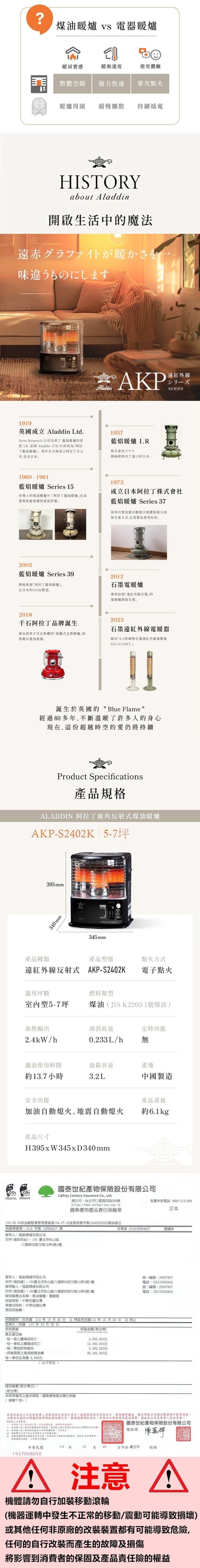 【日本 ALADDIN 阿拉丁】適用5-7坪 煤油爐/煤油暖爐 (AKP-S2402K)