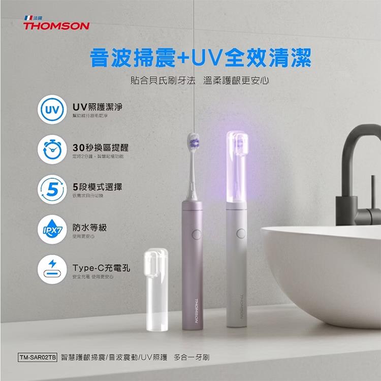 【THOMSON】智慧護齦掃震/音波震動/UV照護 多合一牙刷(TM-SAR02TB)