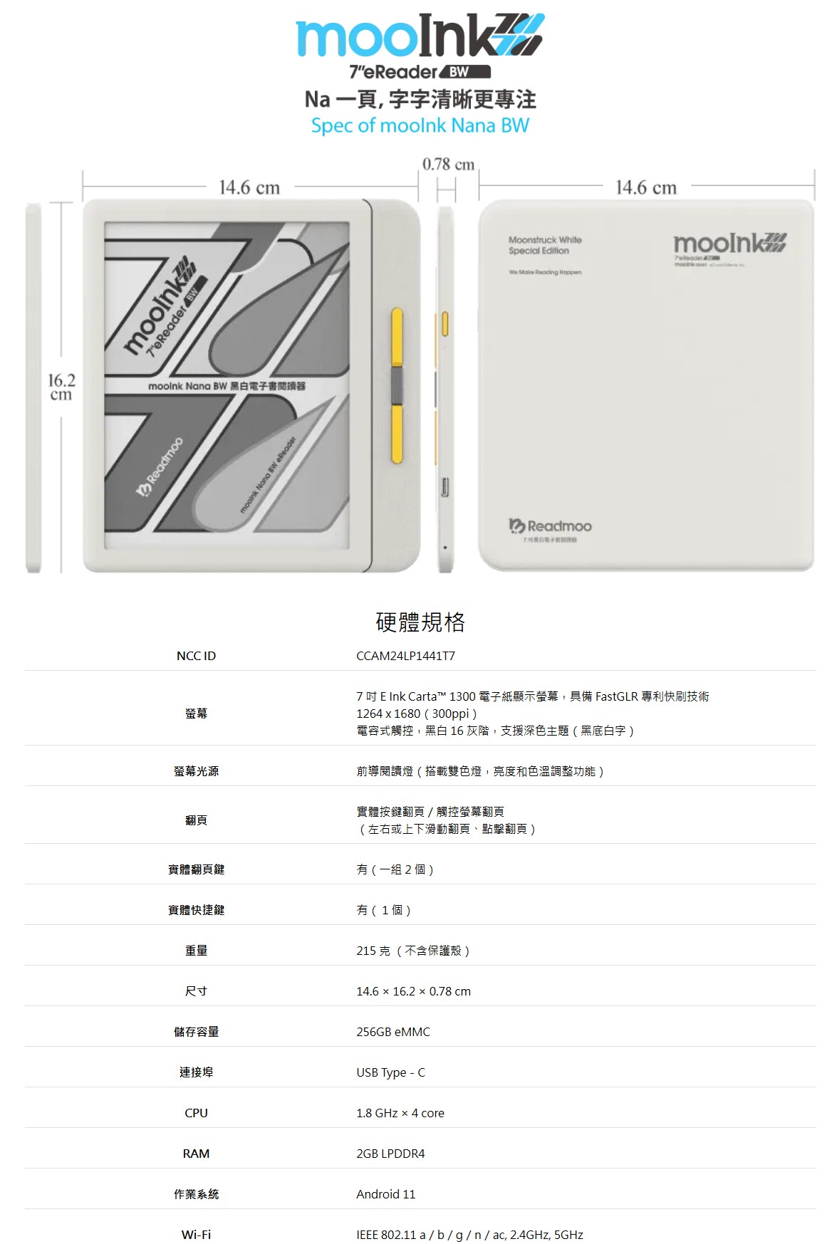 7 吋 mooInk Nana BW 黑白電子書閱讀器