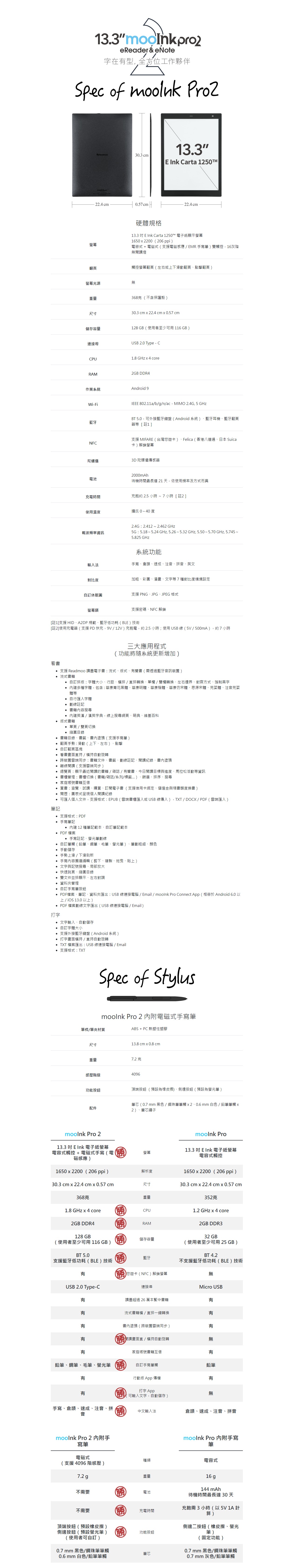 Readmoo讀墨 13.3 吋 mooInk Pro 2 電子書平板-黑