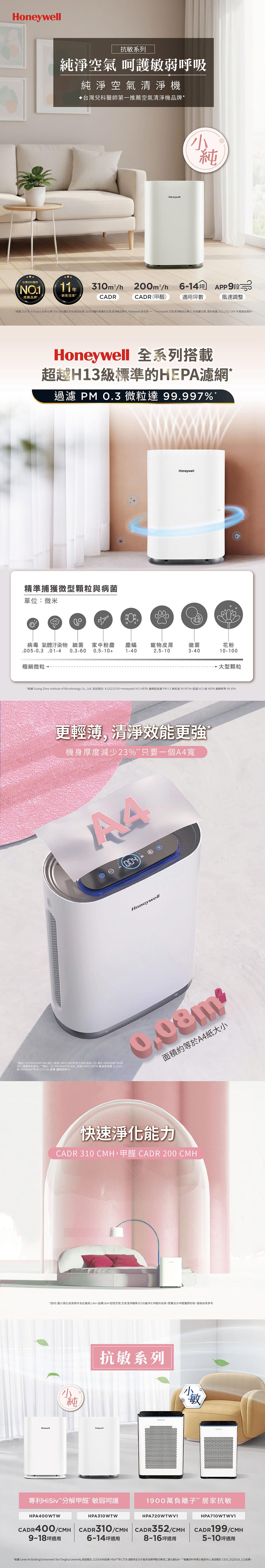 【一年份濾網組】美國Honeywell 純淨空氣清淨機 HPA310WTW (適用6-14坪|小純 mini )