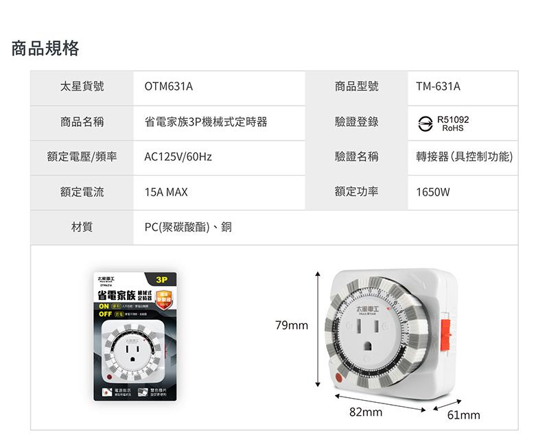【太星電工】省電家族3P機械式定時器 省電/自動開啟/自動關閉 (2入) OTM631A*2