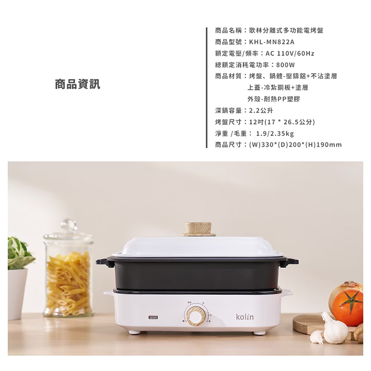 【Kolin 歌林】分離式多功能電烤盤(KHL-MN822A)
