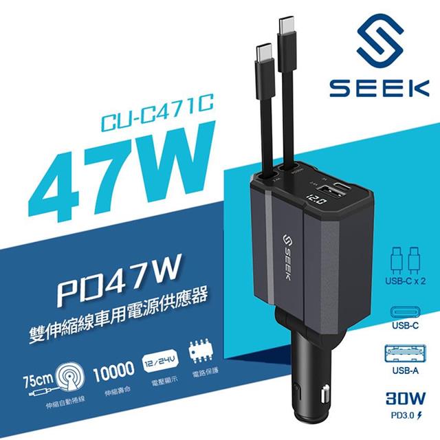SEEK 47W雙伸縮線車用電源供應器/車充(CU-C471C)