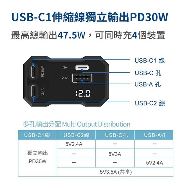 USB-C1線: 5V⎓3A, 9V⎓3A, 12V⎓2.5A(30W)(PPS: 3.3-11V⎓2.5A)