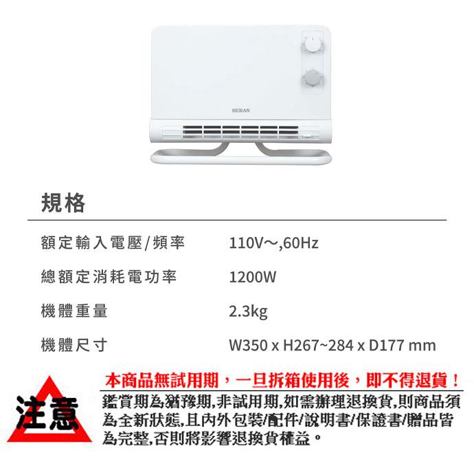 【禾聯HERAN】石墨烯陶瓷電暖器 HPH-12CS010