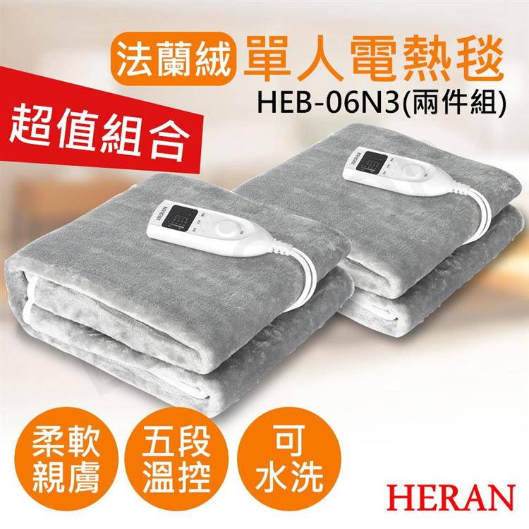 2件優惠【禾聯HERAN】法蘭絨單人電熱毯 HEB-06N3