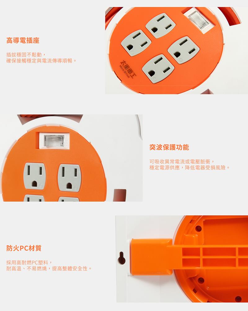 2.過載保護開關:使用中若超過最大容量負荷,過載保護器即會彈起,確保用電安全。