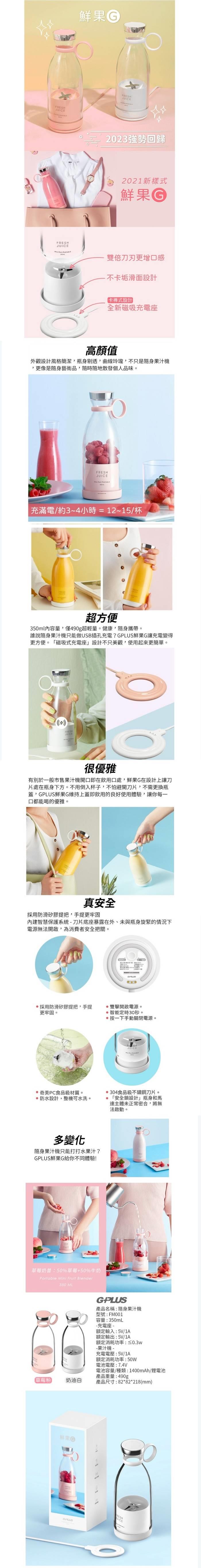 【G-PLUS 拓勤】鮮果G-隨身果汁機 FM001 白色 (附外出底蓋)