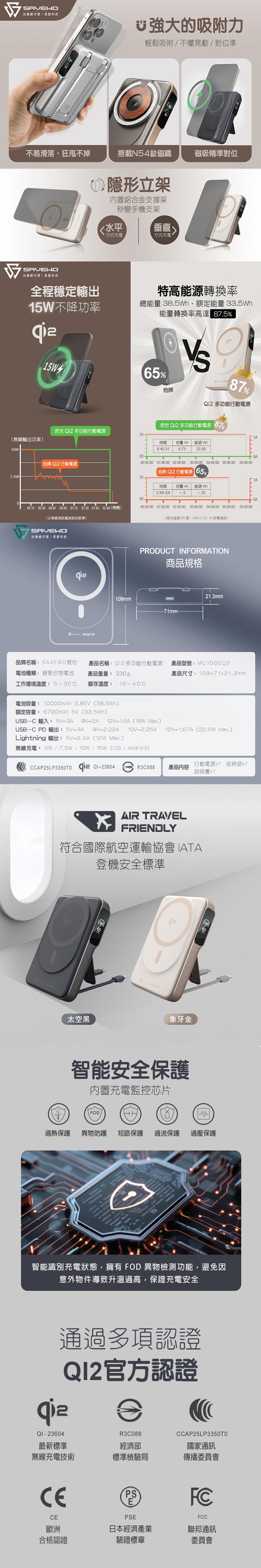 ➣嚴格認證︰通過 Qi2/BSMI/NCC/PSE/CE/FCC/UN38.3/Rohs多項認證(香港機電署認可的實驗室測試及認證)