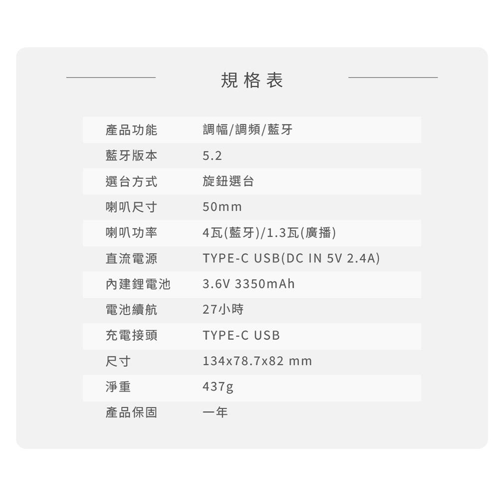 調頻範圍:FM 87.5~108 MHz