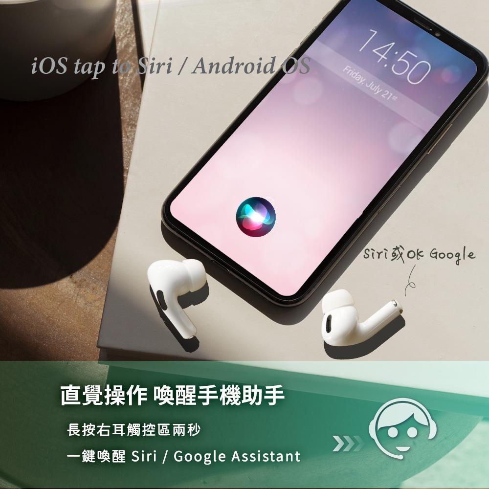 長按 2 秒拒接; 長按右耳 2 秒喚醒 Siri/Google/Bixby。