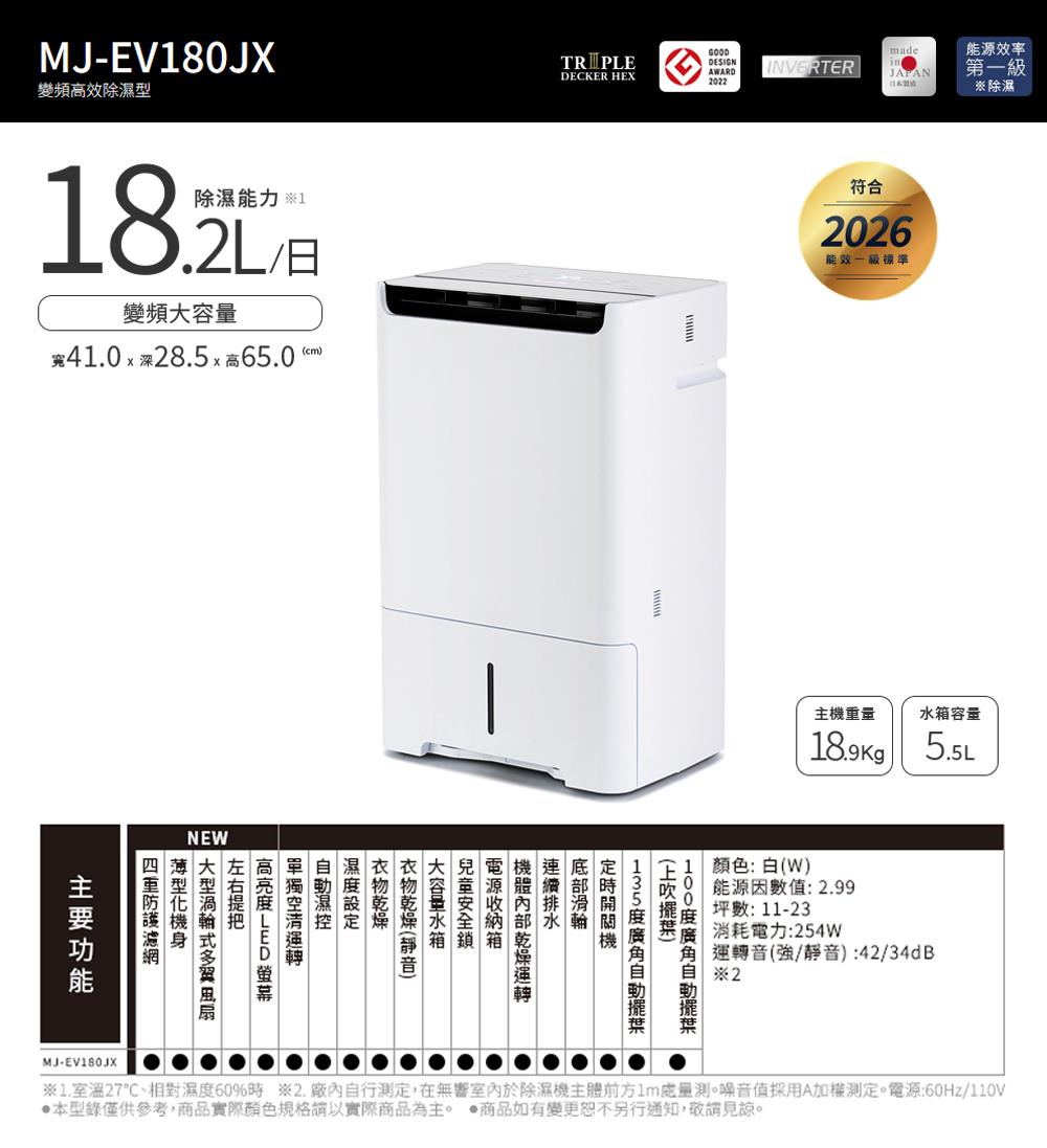 MITSUBISHI三菱 18.2L變頻空氣清淨除濕機 MJ-EV180JX-TW