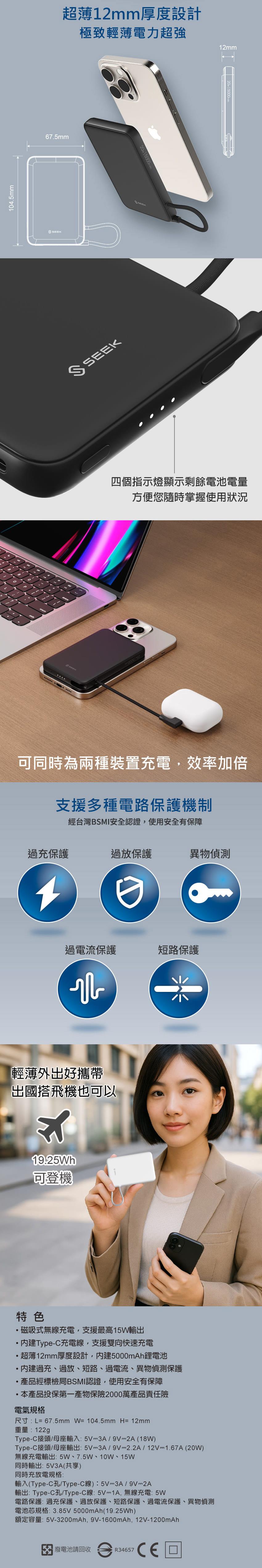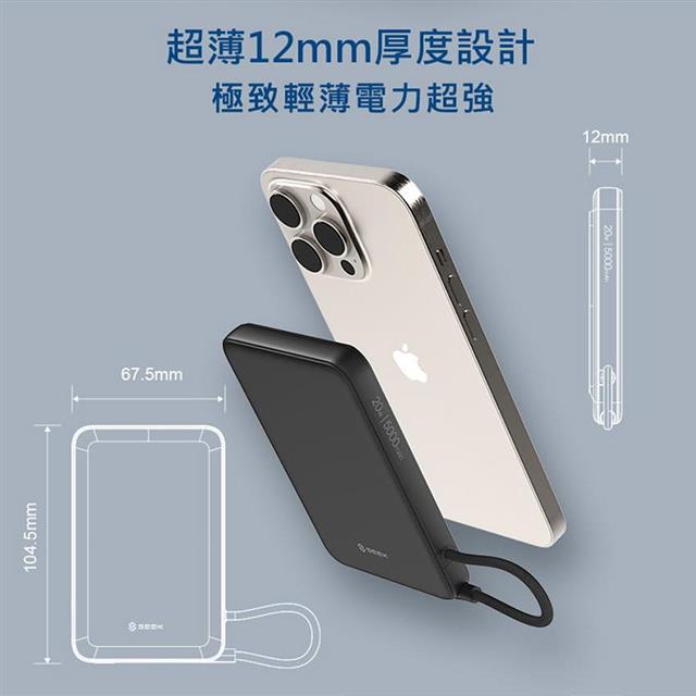 超薄12mm厚度設計,磁吸式無線充電,支援最高15W輸出