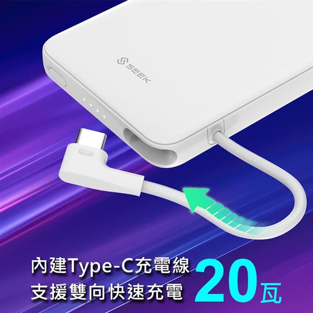 內建Type-C充電線,支援雙向快速充電,內建過充、過放、短路、過電流、異物偵測保護
