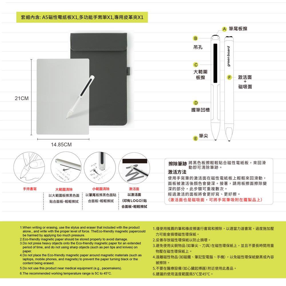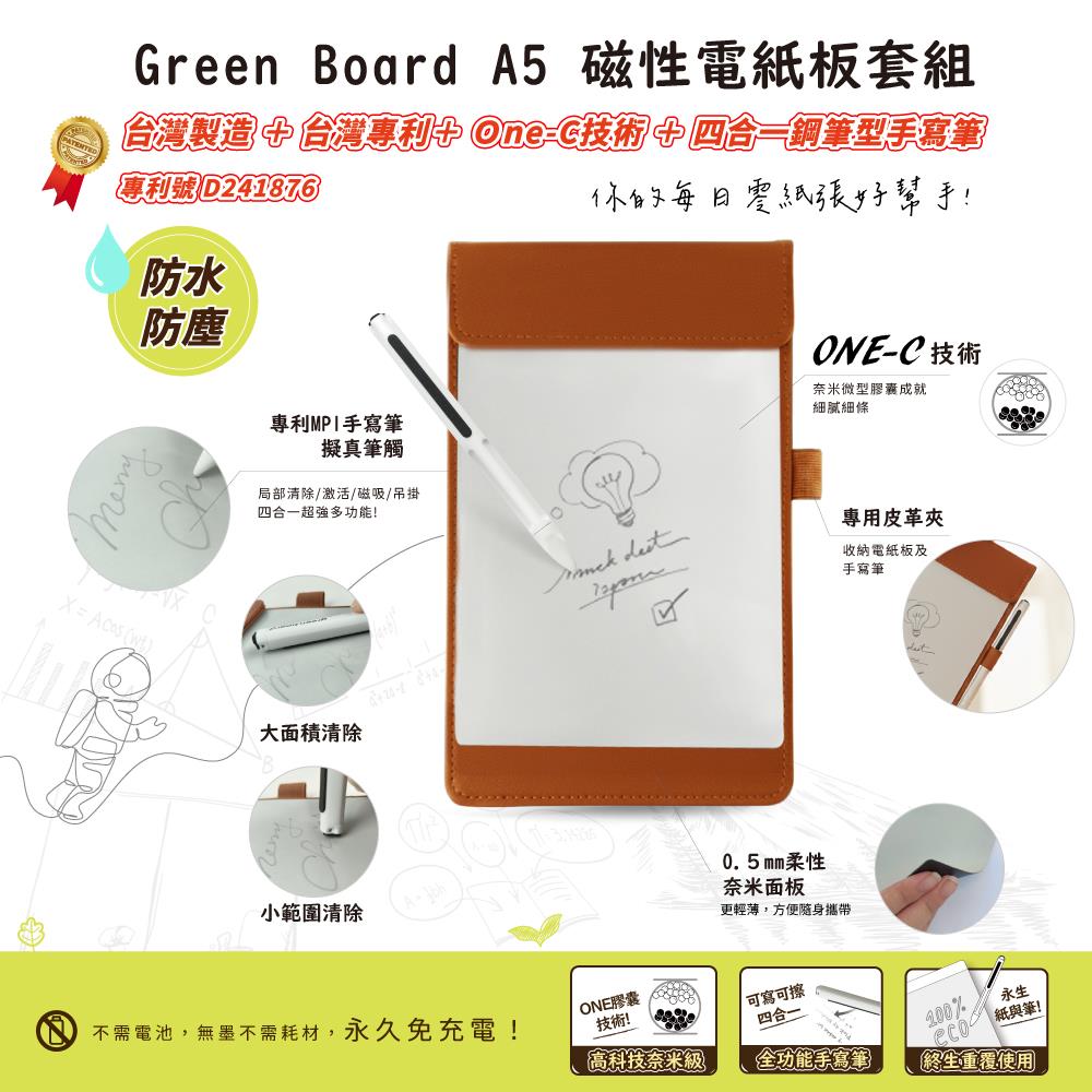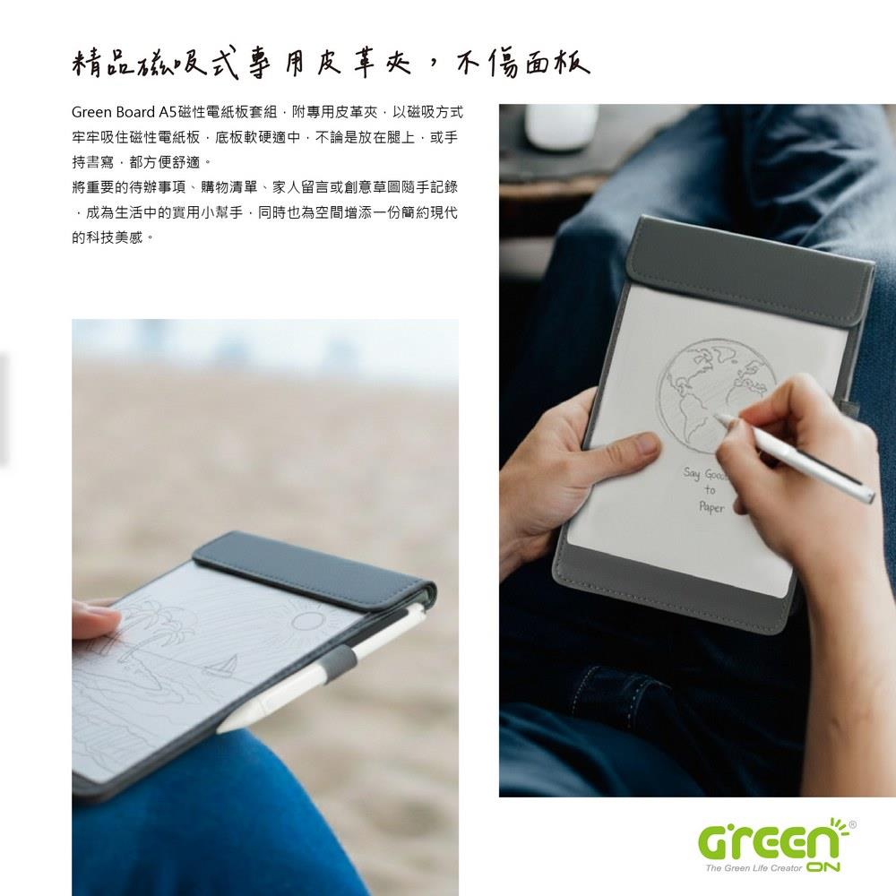 【Green Board】A5磁性電紙板套組 MTA5 進階收納組|電紙板+手寫筆+皮革夾