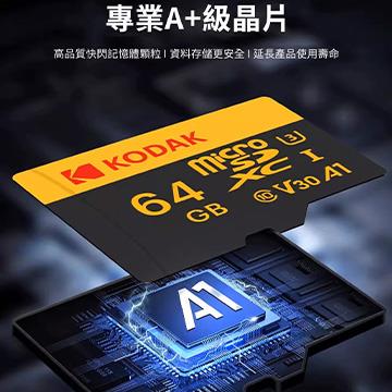 柯達KODAK MicroSD 64GB (UHS-I U3/V30/A1)高速記憶卡-黑色