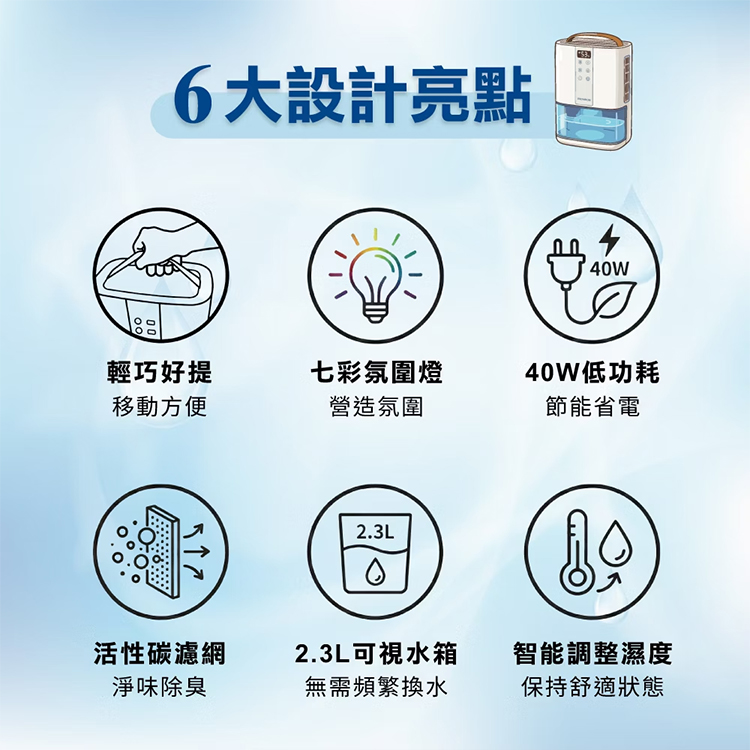 3檔除濕模式切換:睡眠/一般/強力