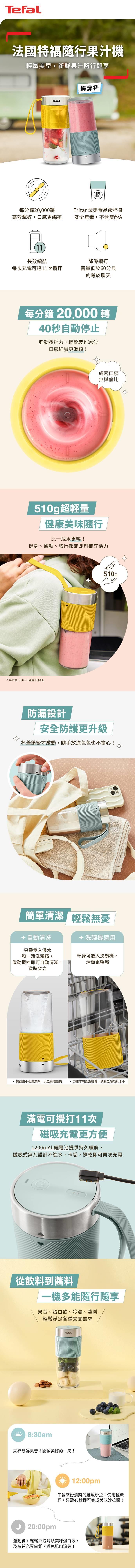510g超輕量隨行杯直接開喝 磁吸充電巧思設計,防水潔淨 低噪靜音細緻運轉 安全防誤觸設計杯身更安心