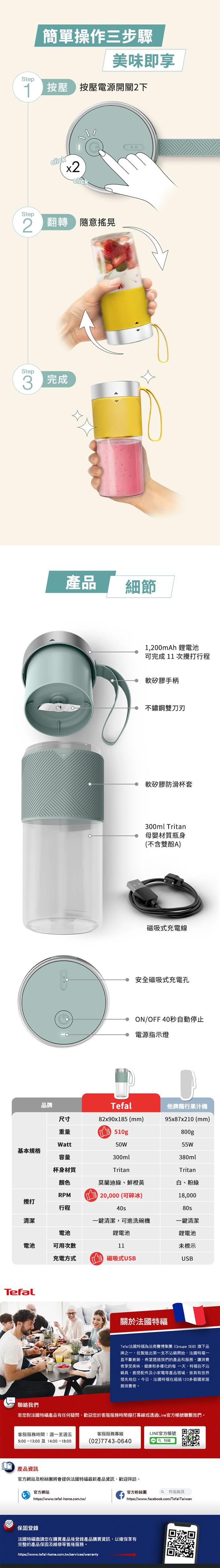 【法國 特福 Tefal】輕量美型隨行果汁機 BL1C0430 莫蘭迪綠