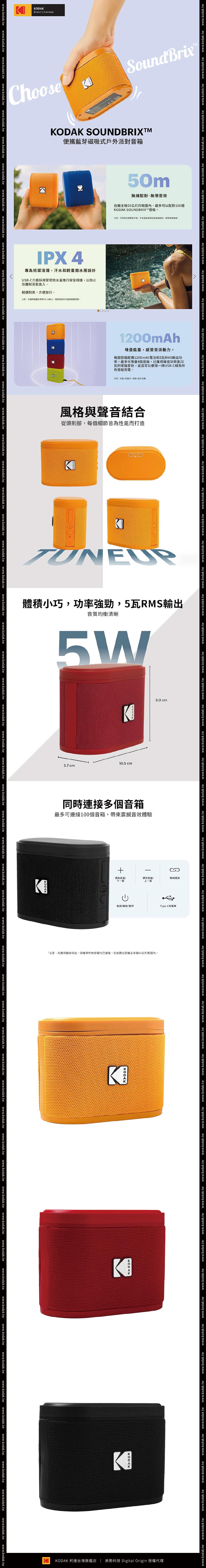 【Kodak 柯達】SOUNDBRIX 迷你聲音積木隨行無線藍牙喇叭-柯達橘