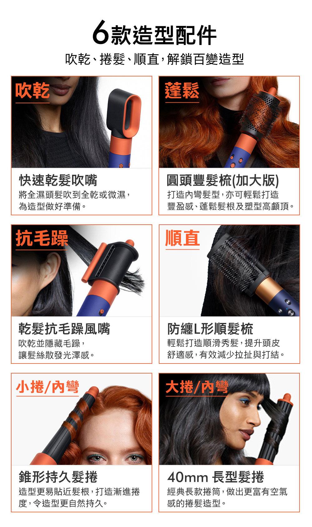 40mm Airwrap長型髮捲:經典長款捲筒,做出更富有空氣感的捲髮造型。