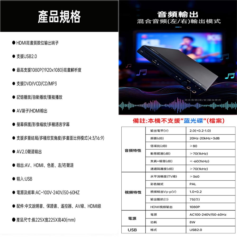 支援 HDMI / CD / DVD / USB 多種播放介面