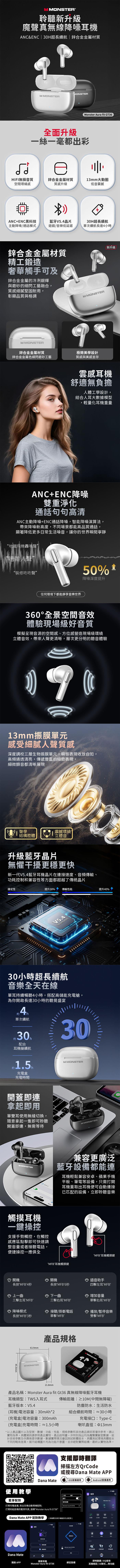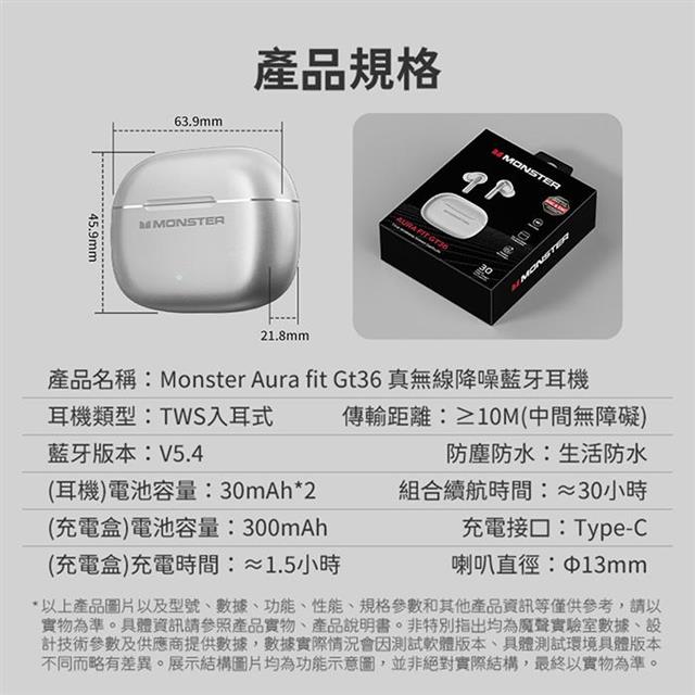 【Monster】Aura fit GT36 真無線降噪藍牙耳機 支援即時翻譯