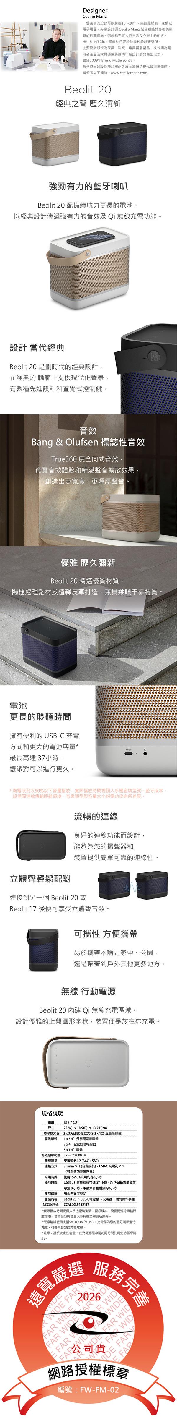 ◎型號:Beolit 20無線藍牙喇叭(可攜式)