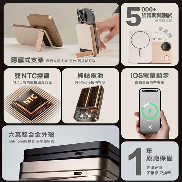 【SHOWHAN】磁吸三用 旋轉支架 無線充行動電源 5000mAh(支援手錶/AirPods/手機充電)(Wh標示/CCC認證)