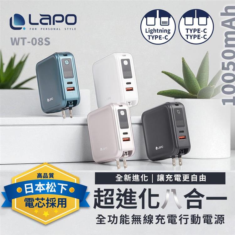 【LaPO】全功能無線充電行動電源10050mAh(WT-08S)(C+C/C+L任選)