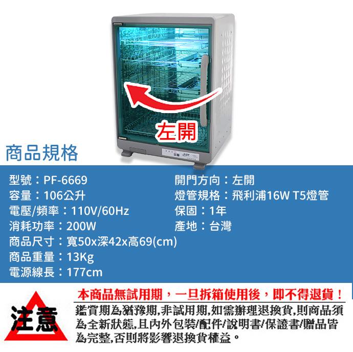 【友情牌】106公升四層紫外線烘碗機 PF-6669
