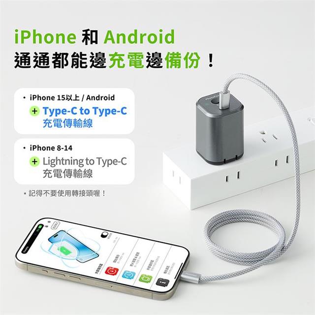 ➣支援免插電、免網路備份(此功能限Type-C 充電孔手機)