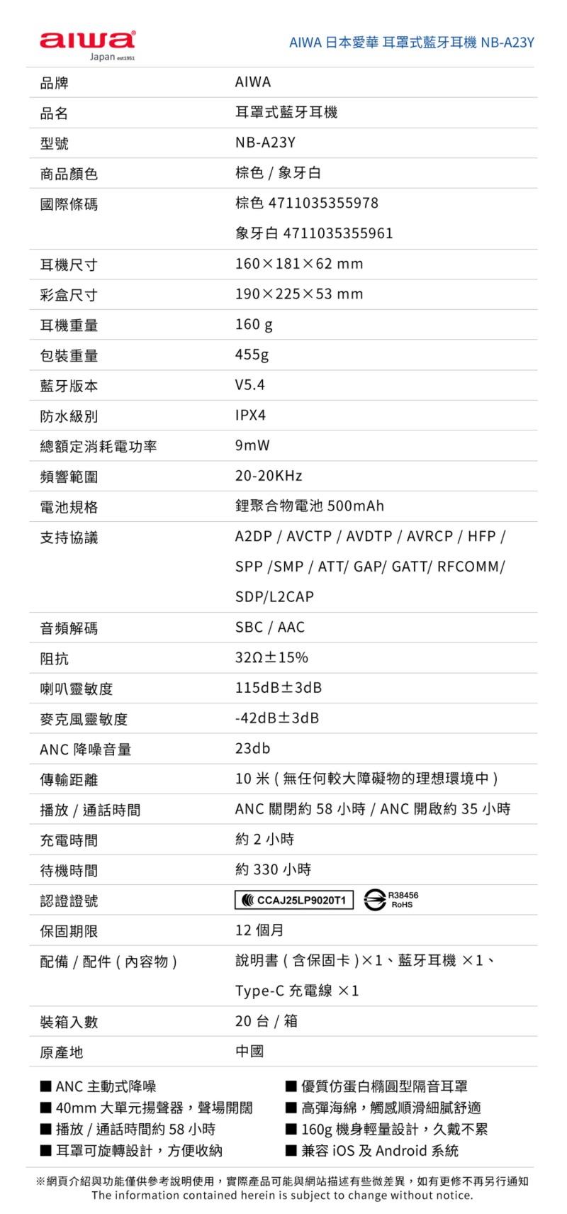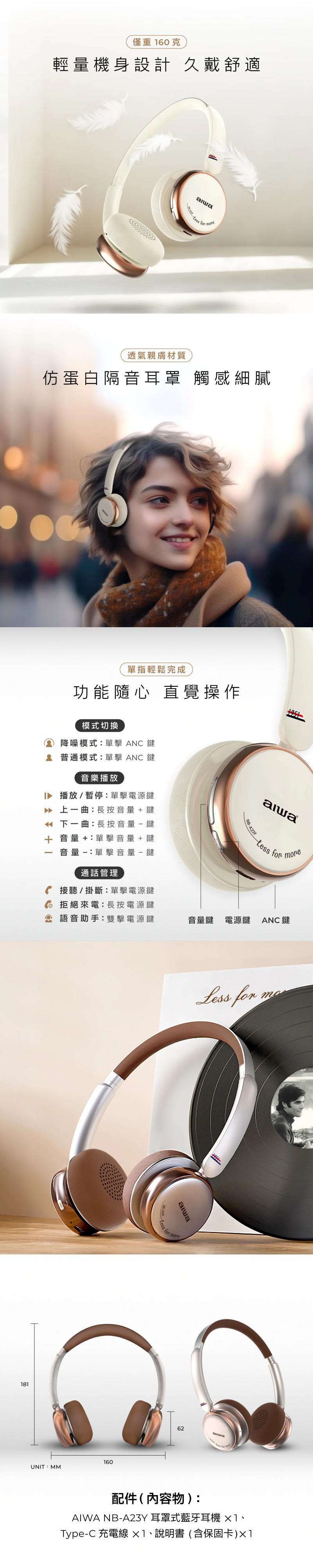 .ANC主動式降噪 .40mm 大單元揚聲器,聲場開闊 .播放/通話時間約58小時 .耳罩可旋轉設計,方便收納