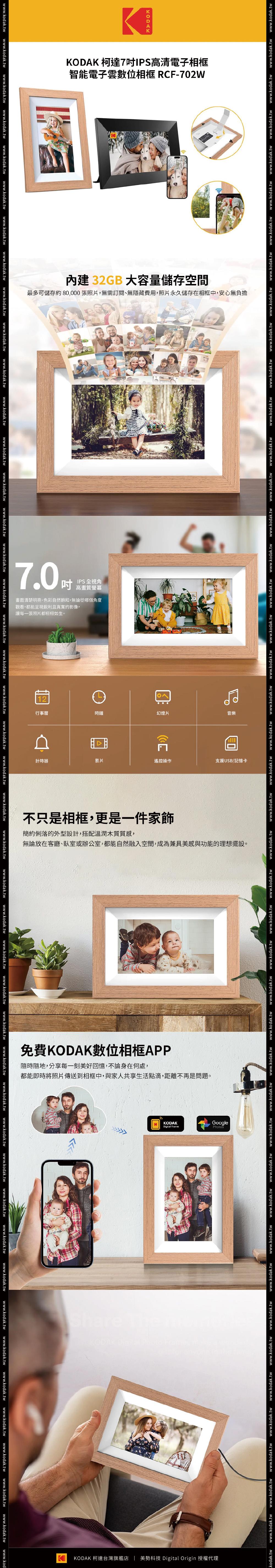 【Kodak 柯達】7吋IPS高清電子相框智能電子雲數位相框 RCF-702W