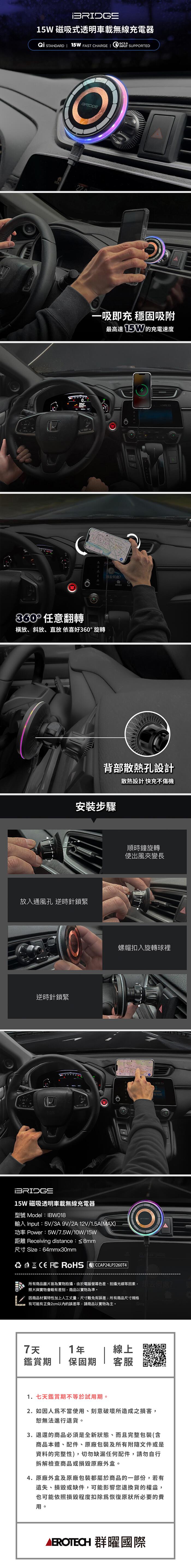 iBRIDGE 15W磁吸式透明車載無線充電器