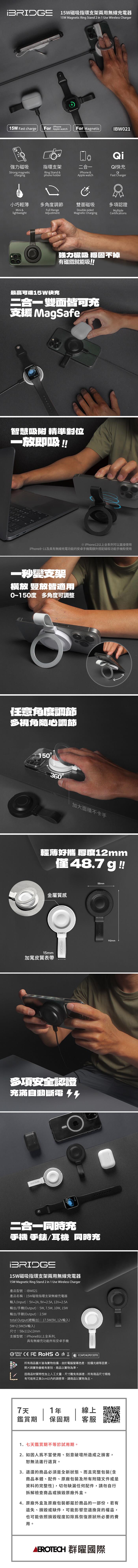 iBRIDGE 15W磁吸指環支架兩用無線充電器