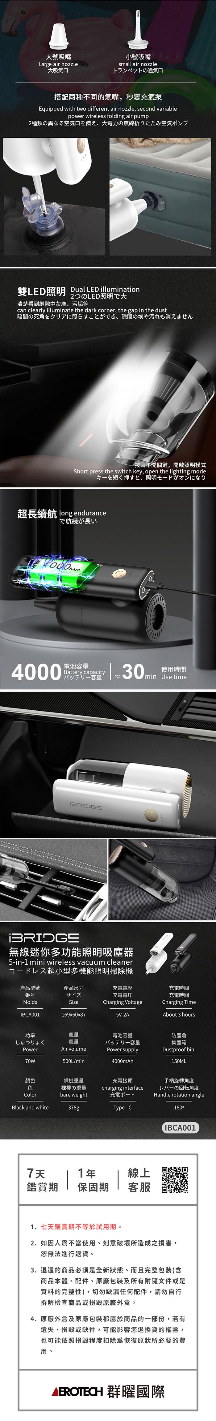 iBRIDGE 無線迷你多功能照明吸塵器